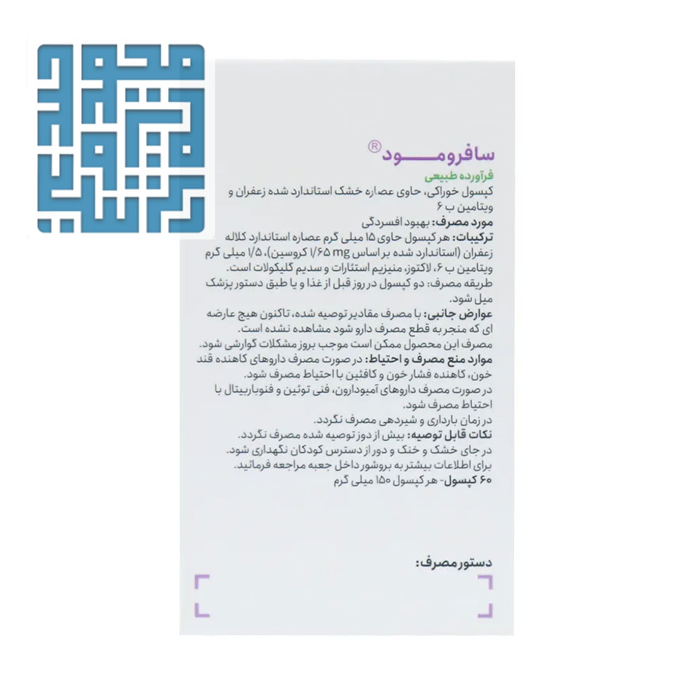 خرید کپسول گیاهی ضد افسردگی سافرومود گیاهان سبز زندگی 60 عدد