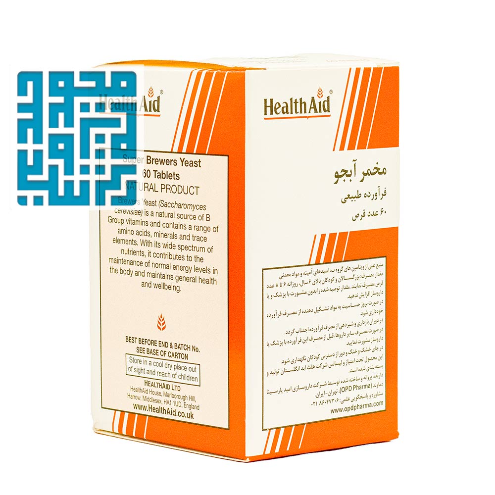 قرص مخمر آبجو هلث اید یک مکمل غذایی است که از ساکارومایسس سرویزیه، نوعی قارچ که در تخمیر آبجو استفاده میشود، به دست میآید. این قرص سرشار از ویتامینهای گروه B کمپلکس، اسیدهای آمینه ضروری، مواد معدنی مانند کروم و سلنیوم و سایر مواد مغذی مفید است.