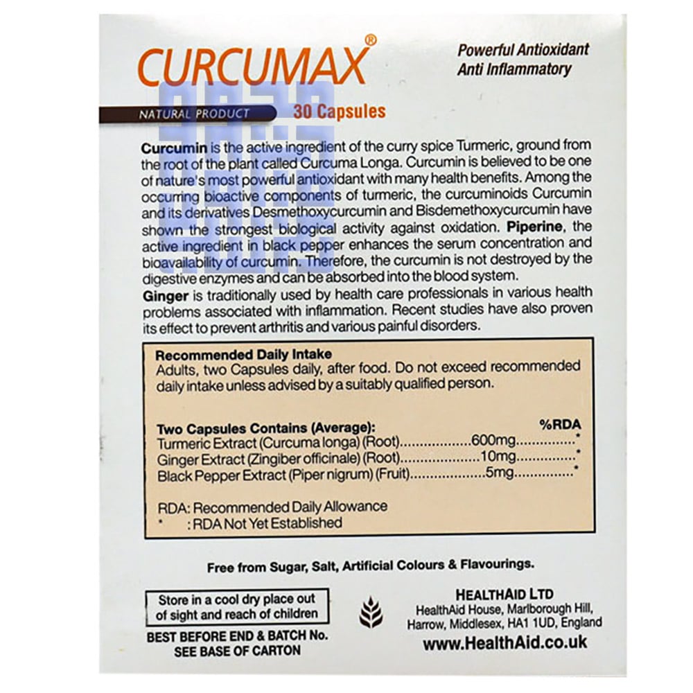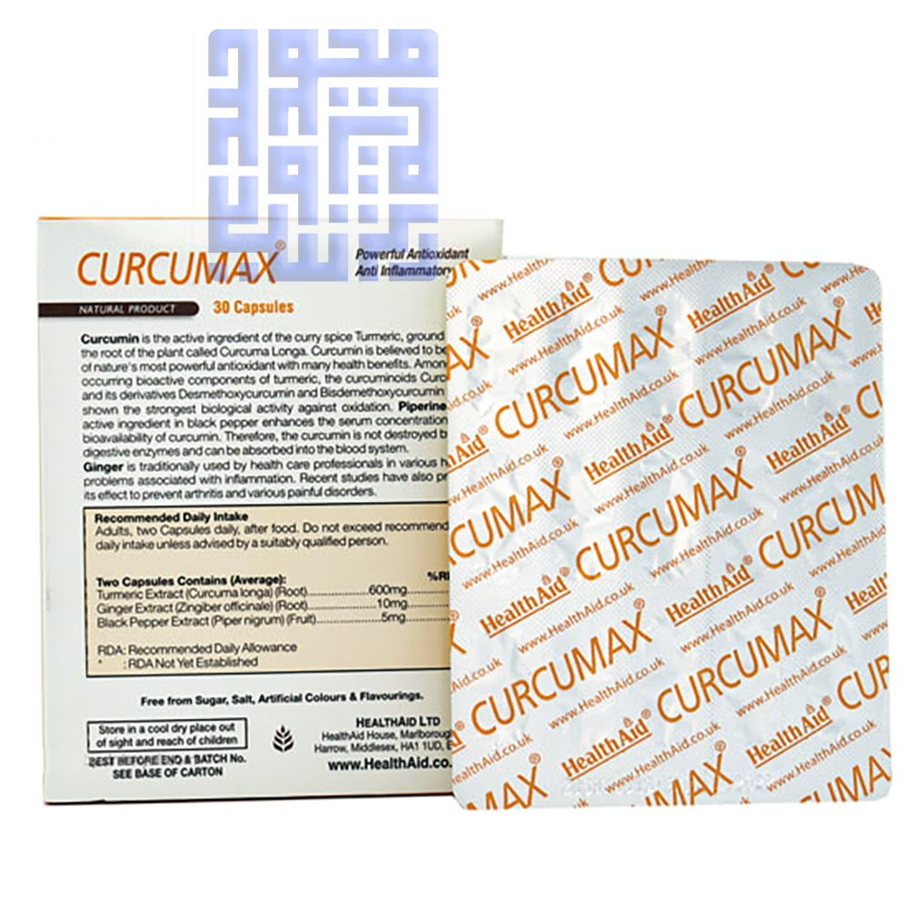 کپسول کورکومکس هلث اید یک مکمل غذایی بوده که حاوی عصاره زردچوبه، زنجبیل و فلفل سیاه است. این مکمل دارای خواص آنتیاکسیدانی و ضدالتهابی است و میتواند در درمان یا بهبود بیماریهای مختلفی همانند آرتروز، کبد چرب، سوءهاضمه، دیابت و سرطان مفید باشد. هر کپسول کورکومکس هلث اید حاوی 600 میلیگرم عصاره زردچوبه (با 95% کورکومین)، 10 میلیگرم عصاره زنجبیل و 5 میلیگرم عصاره فلفل سیاه (با 95% پیپرین) است.