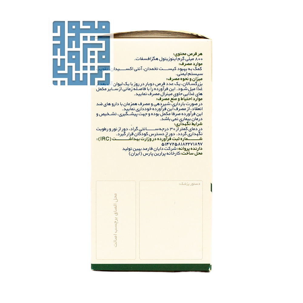 زمان مصرف: بهتر است قرص را همراه با غذا یا بلافاصله بعد از غذا میل کنید. این کار به جذب بهتر اینوسیتول هگزا فسفات کمک می‌کند.