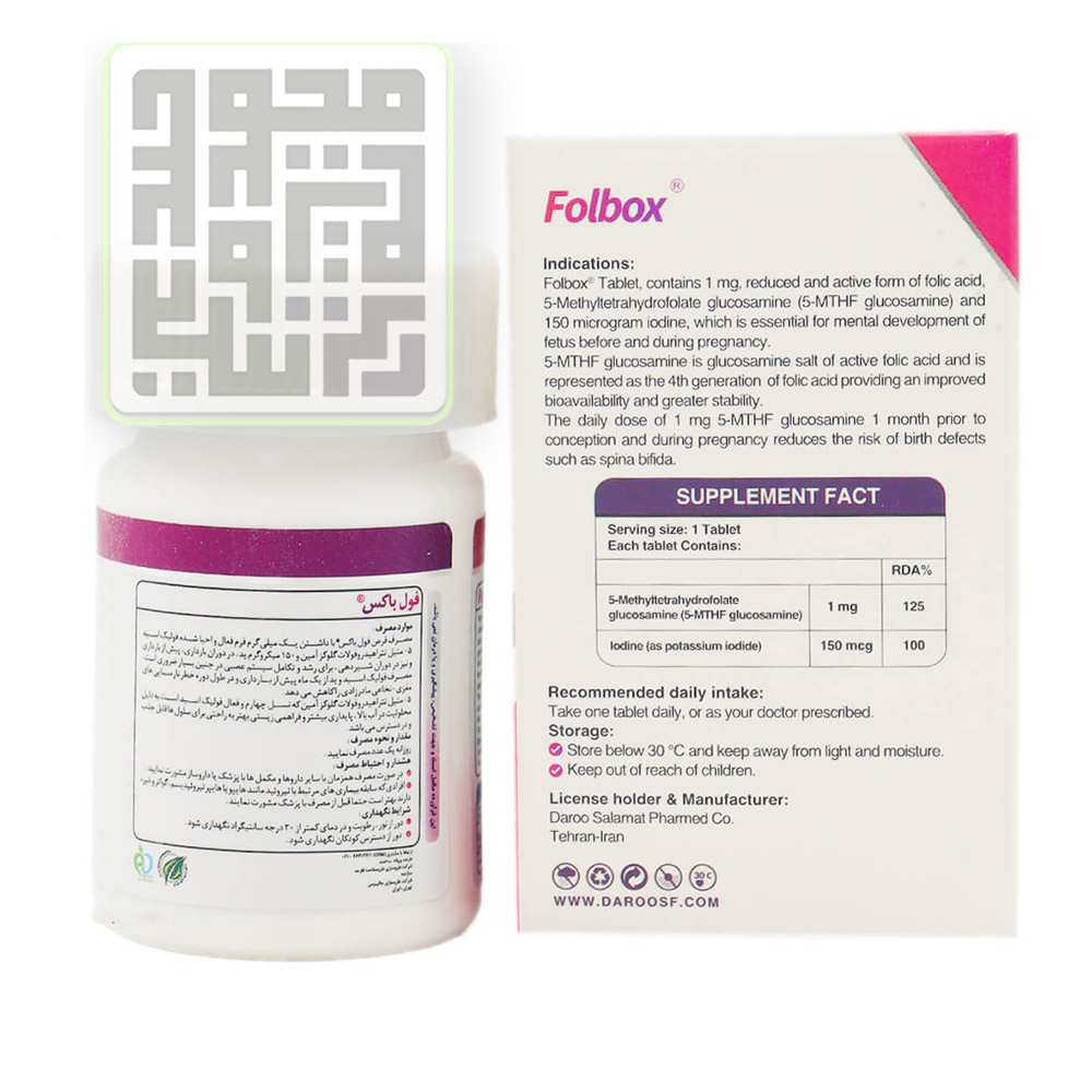قرص فول باکس‌ های هلث حاوی اسید فولیک بوده که به کاهش خطر نقص لوله عصبی در جنین معروف است.