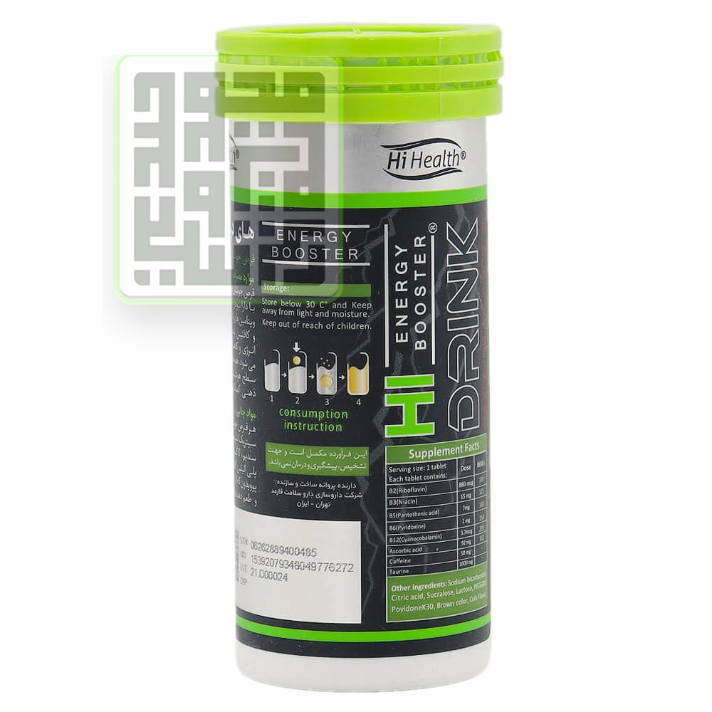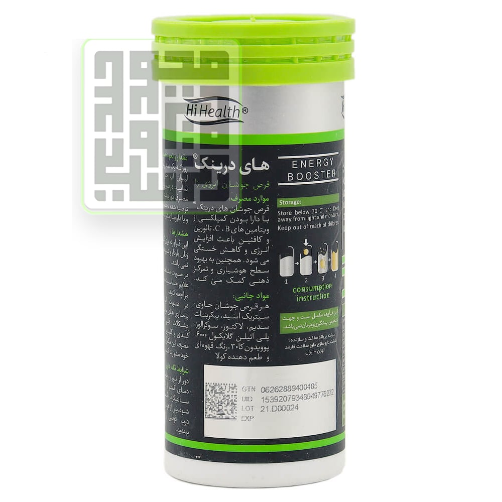 همچنین قرص جوشان انرژی زا های درینک های هلث حاوی 50 میلیگرم کافئین در هر قرص است.
