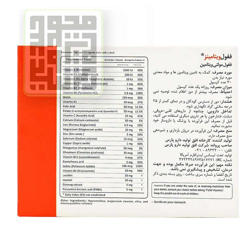 ترکیبات کپسول ففول ویتامینز اینترافارم