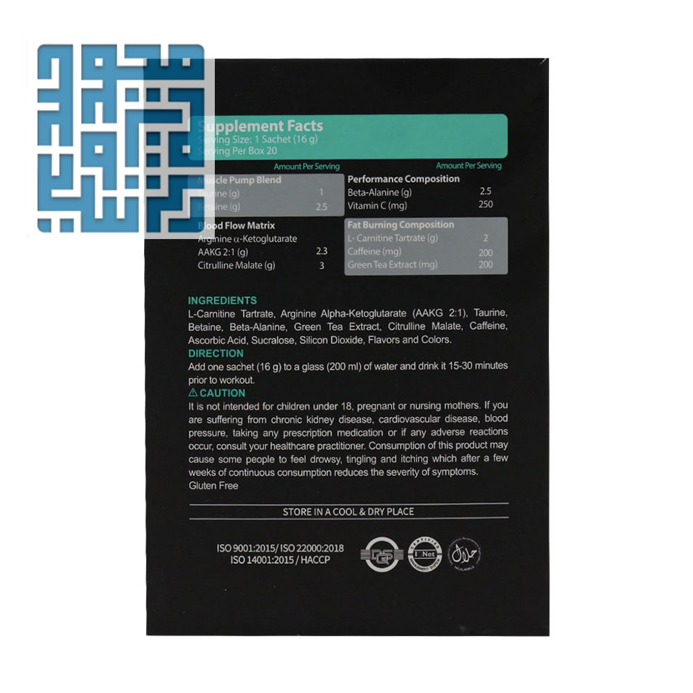 یک ساشه (16 گرم) را در یک لیوان (200 میلی لیتر) آب حل کرده و 15 تا 30 دقیقه قبل از شروع ورزش میل نمایید.