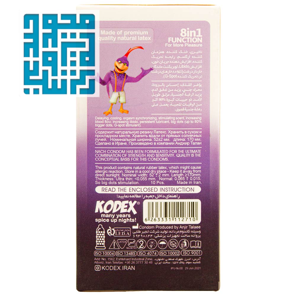 کاندوم ناچ کدکس ۸ در ۱ فانکشن Nach Kodex 8in1 Function فرصتی برای تجربه نهایت لذت و ایمنی در یک رابطه. این کاندوم 8 کاره کدکس برای تقویت تجربه جنسی شما و ارائه نهایت لذت و امنیت طراحی شده است.