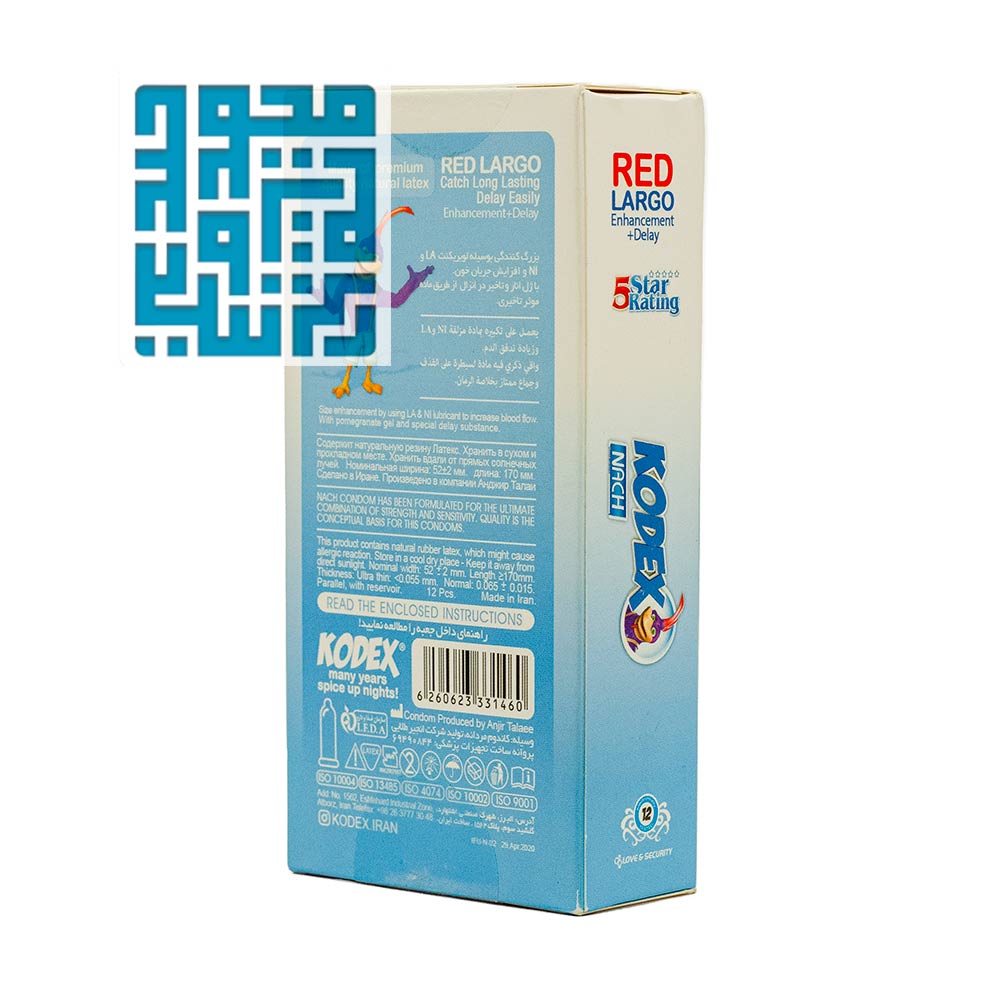 کاندوم کدکس Red largo بزرگ کننده بسته 12 تایی یکی دیگر از محصولات برند ناچ کدکس یا کدکس است.