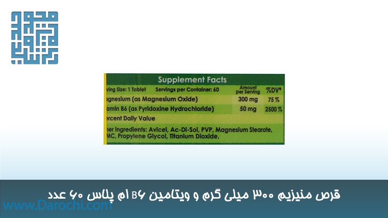 ترکیبات قرص منیزیم و ویتامین B6 ام پلاس