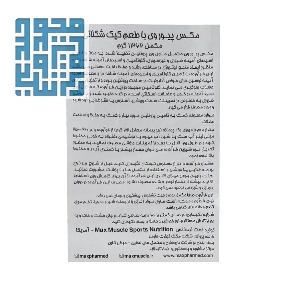 جدول ترکیبات پیور وی 100 درصد مکس ماسل