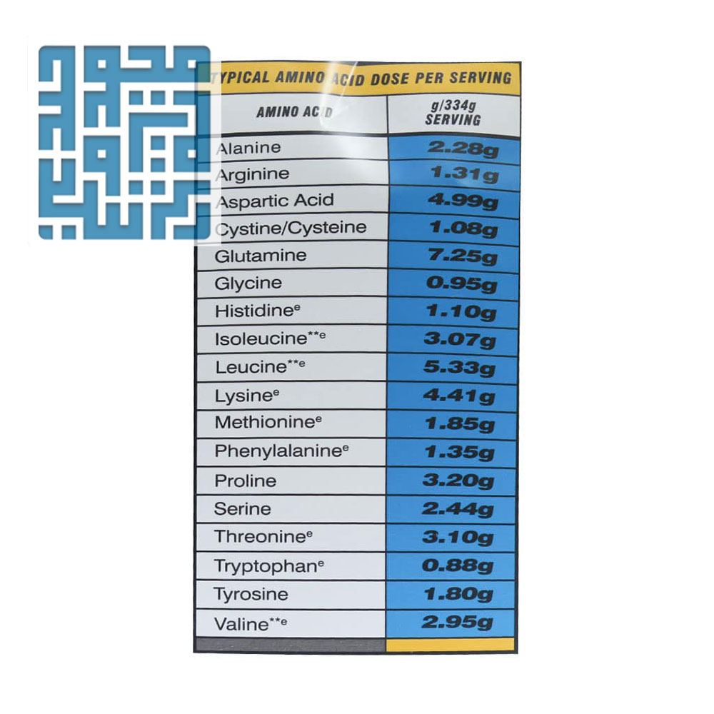 ترکیبات مقدار در 6 اسکوپ (334 گرم) درصد نیاز مصرف روزانه