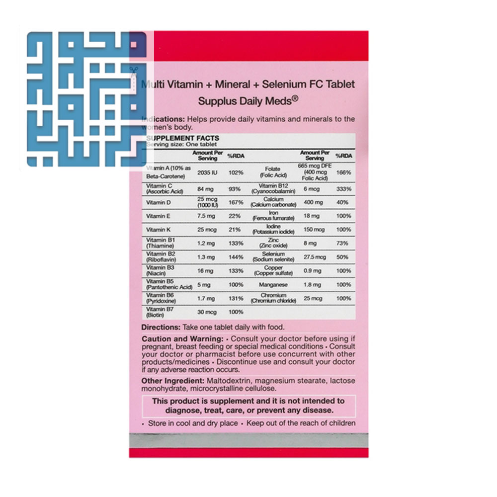 • خرید مولتی‌ویتامین بانوان ساپلاس دیلی مدز ۳۰ عددی مولتی‌ ویتامین بانوان ساپلاس دیلی مدز ۳۰ عددی