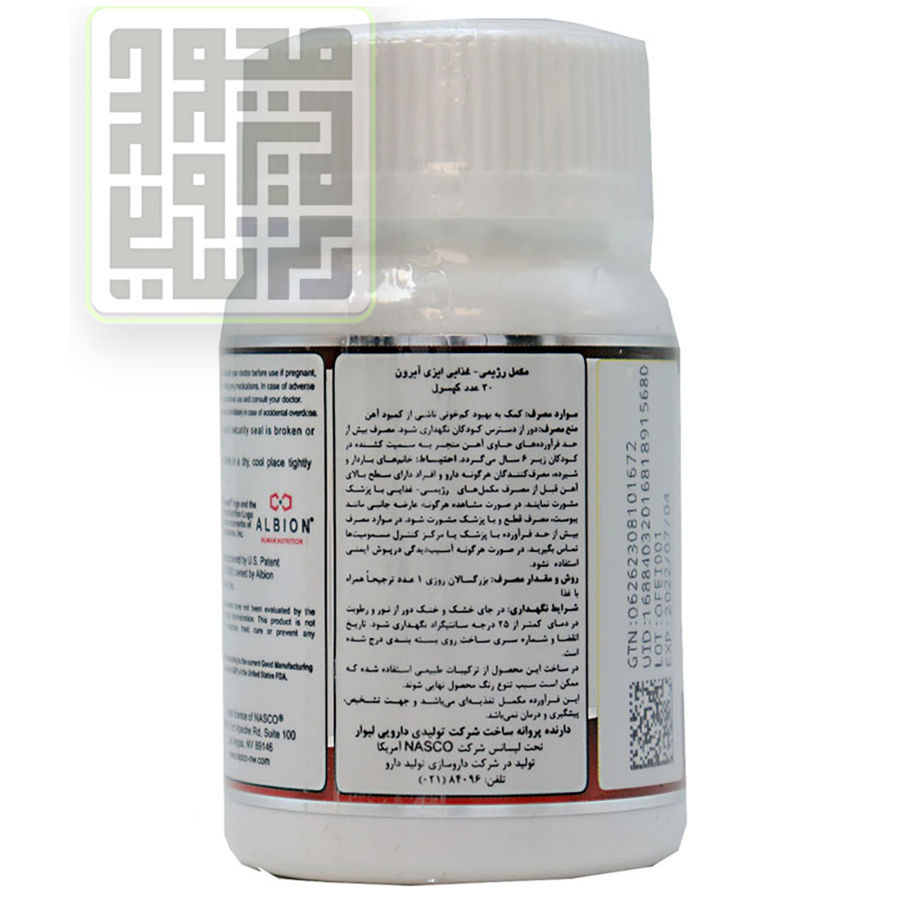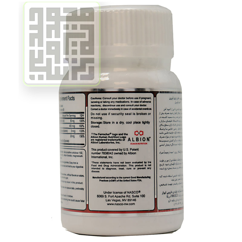 این کپسول مهمترین ریزمغذیهای مؤثر در ساخت گلبول قرمز را دارد. عوارض گوارشی کم و جذب بهتر تا 4 برابر از مهمترین مزیت این محصول به نسبت سایر مکملهای آهن است.