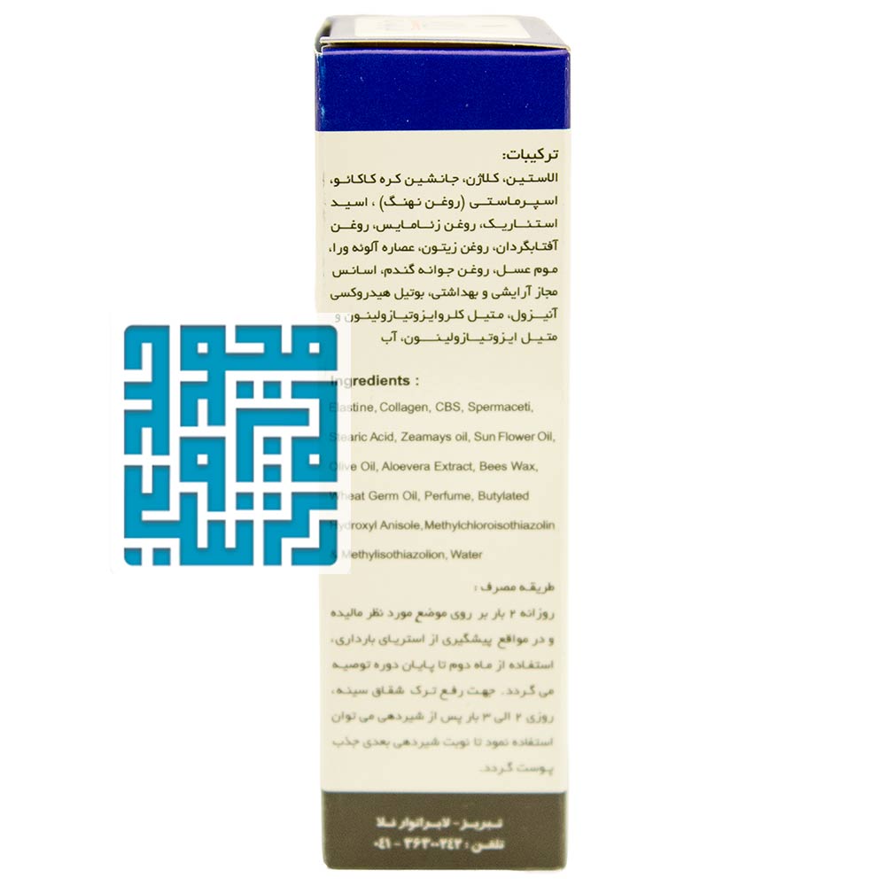 این کرم باعث افزایش خاصیت ارتجاعی پوست شده و از ایجاد ترک و نوارهای سفید پوست جلوگیری میکند. علاوه بر این، خواص آبرسانی این کرم به بهبود ترکهای موجود کمک کرده و سلامت و شادابی طبیعی پوست را بازیابی میکند.