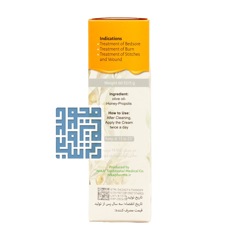 کرم الیو و هانی نیکا یک محصول مراقبت از پوست است که با ترکیبات طبیعی مانند روغن زیتون، عسل و بره موم فرموله شده. کرم زخم کرم الیو و هانی نیکا (Olive and Honey) جهت بهبود کامل زخم بستر و ترمیم محل سوختگی از ترکیبات ۱۰۰ درصد طبیعی در قالب تیوپ های ۳۰ گرمی در شرکت فراورده های طب سنتی نیکا در ایران تولید و عرضه میشود.
