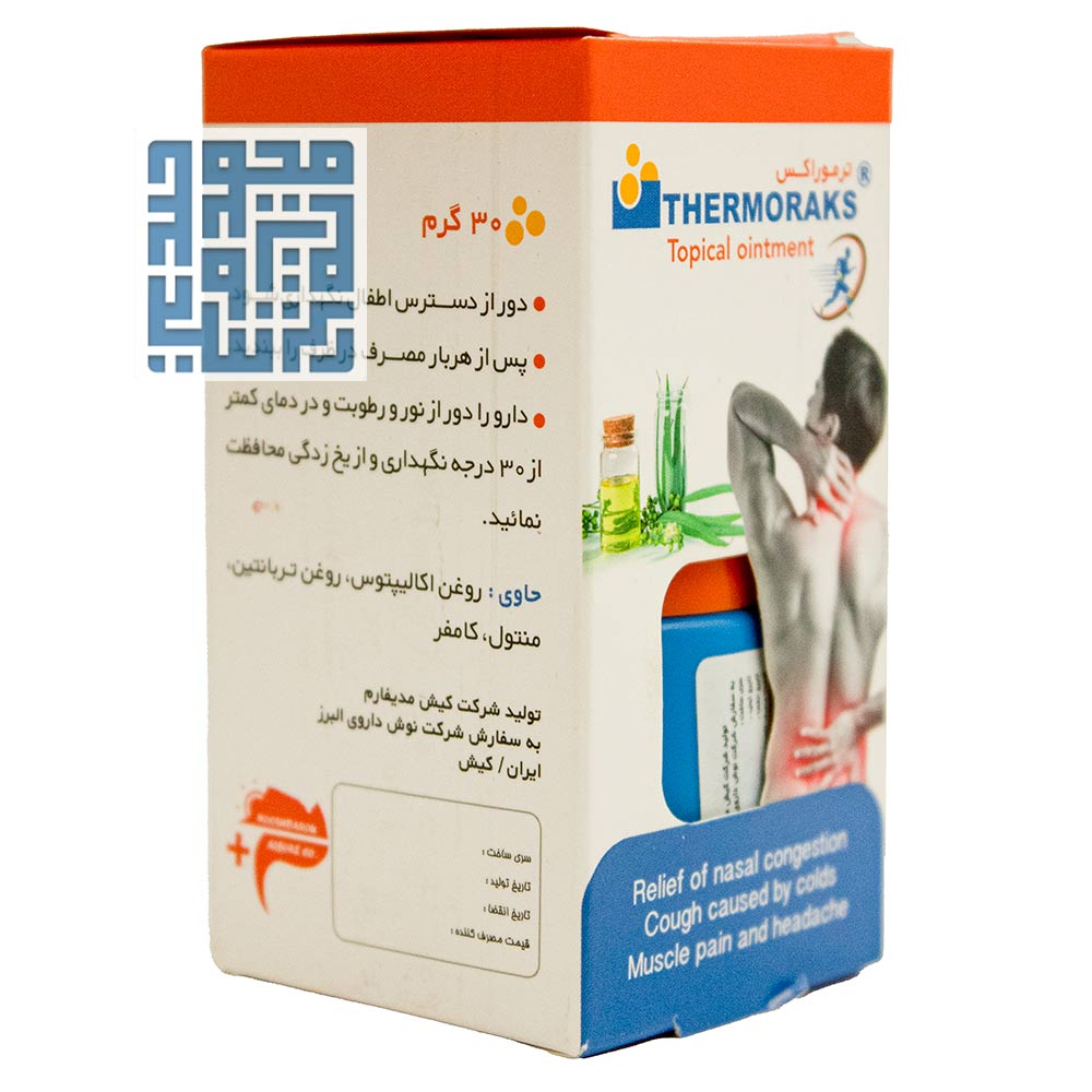 کرم ترموراکس یک کرم موضعی بوده که برای درمان طیف وسیعی از بیماریها طراحی شده. این کرم با ترکیبات قوی مانند روغن اکالیپتوس، منتول و روغن سقز، به عنوان یک ضداحتقان قوی برای مجاری بینی عمل میکند.