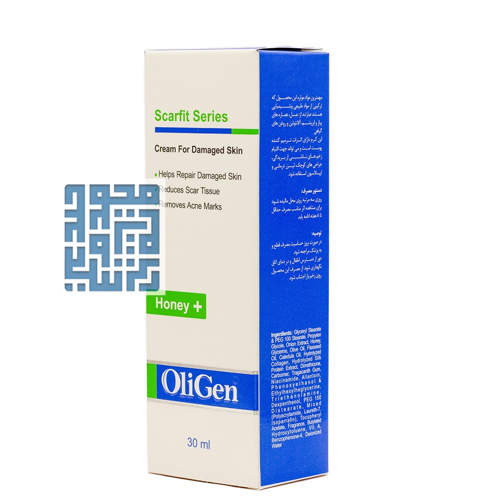 عسل موجود در کرم الی ژن مدل اسکارفیت با خواص ترمیم کننده مشهور است. ویسکوزیته بالای عسل یک سد محافظ ایجاد کرده که از عفونت زخم جلوگیری میکند و از سوی دیگر PH اسیدی عسل باعث ایجاد یک محیط بهبودی بهینه میشود.قندهای طبیعی عسل همچنین آب را از بافتهای آسیب دیده خارج میکند، فرایندی که به اسمز معروف است و تورم را کاهش میدهد و روند بهبود را تسریع میکند.همچنین عصاره پیاز موجود در کرم الی ژن مدل اسکارفیت حاوی کوئرستین، یک آنتی اکسیدان قوی است که التهاب را کاهش داده و باعث بهبود زخم میشود. کوئرستین از تولید بیش از حد کلاژن در محل زخم جلوگیری کرده که یک علت شایع تشکیل کلوئید است.