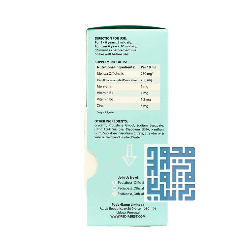 ملاتونین مهم ترین هورمونی است که در عمیق شدن و شروع فرآیند خواب موثر است. شربت اسلیپ پدیابست با تامین ملاتونین مورد نیاز بدن، به تنظیم ساعت بیولوژیک کودک کمک کرده و خوابی منظم و باکیفیت را برای او به ارمغان میآورد. ملاتونین با ایجاد احساس خوابآلودگی، به کودک کمک میکند تا سریعتر به خواب رود و مدت زمان بیشتری در خواب بماند.