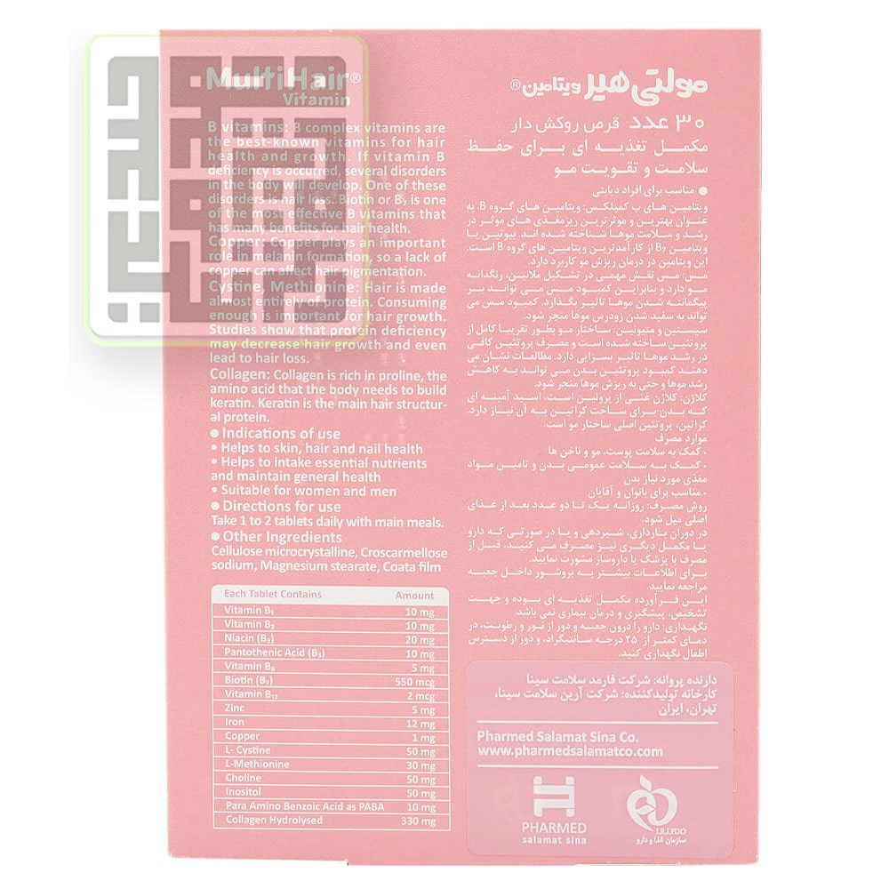 قرص مولتی هیر ویتامین برای بهبود کیفیت مو فرموله شده و ممکن است به کاهش نازک شدن مو کمک کند، اما به طور خاص به عنوان یک درمان ریزش مو طراحی نشده.