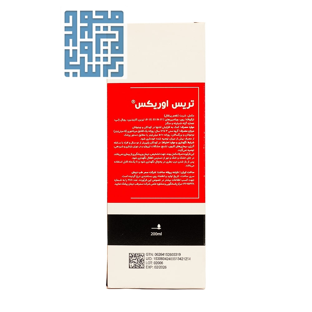 معرفی و بررسی شربت ترس اوریکس فورت ای ای سمر طب درمان 200 میلی لیتری