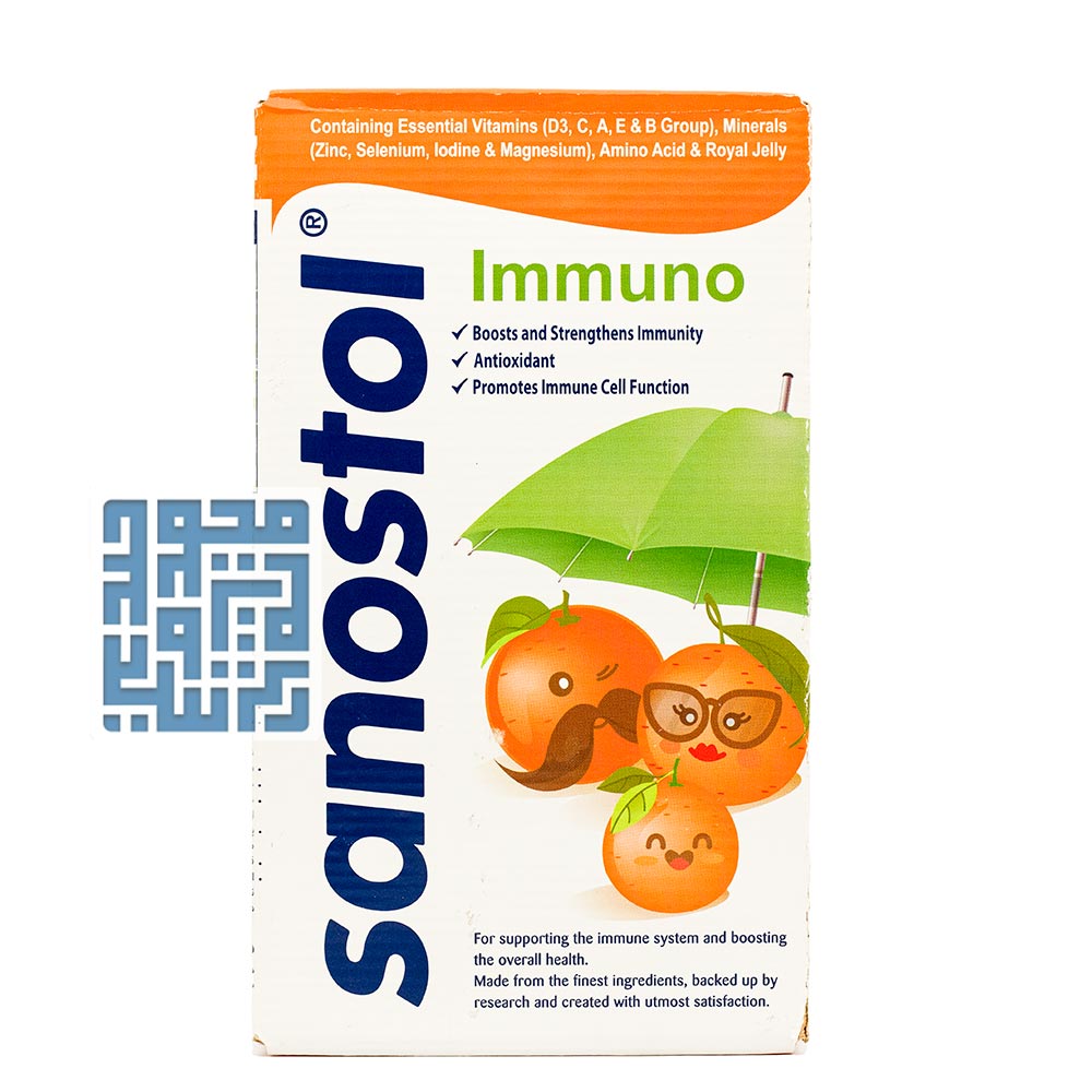 شربت سانستول ایمونو یک محصول فوقالعاده جهت تقویت سیستم ایمنی بدن است. این فرآورده حاوی ویتامینهای ضروری D ، A، E،C و گروه B و مواد معدنی (روی، سلنیوم، ید و منیزیم)، اسیدآمینه و ژل رویال است که جهت تقویت سیستم ایمنی و بهبود سلامت عمومی بدن کاربرد دارد. ترکیبات این شربت قادر هستند تا به سلولها کمک کنند که در برابر آسیبهای احتمالی دوام بیاورند.