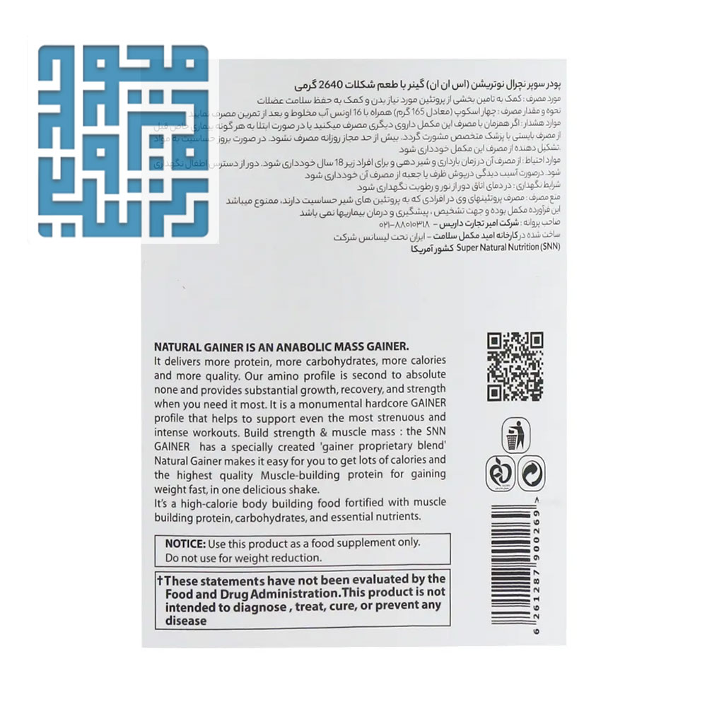 گینر نچرال اس ان ان ، مکمل غذایی برای افزایش وزن و عضله سازی