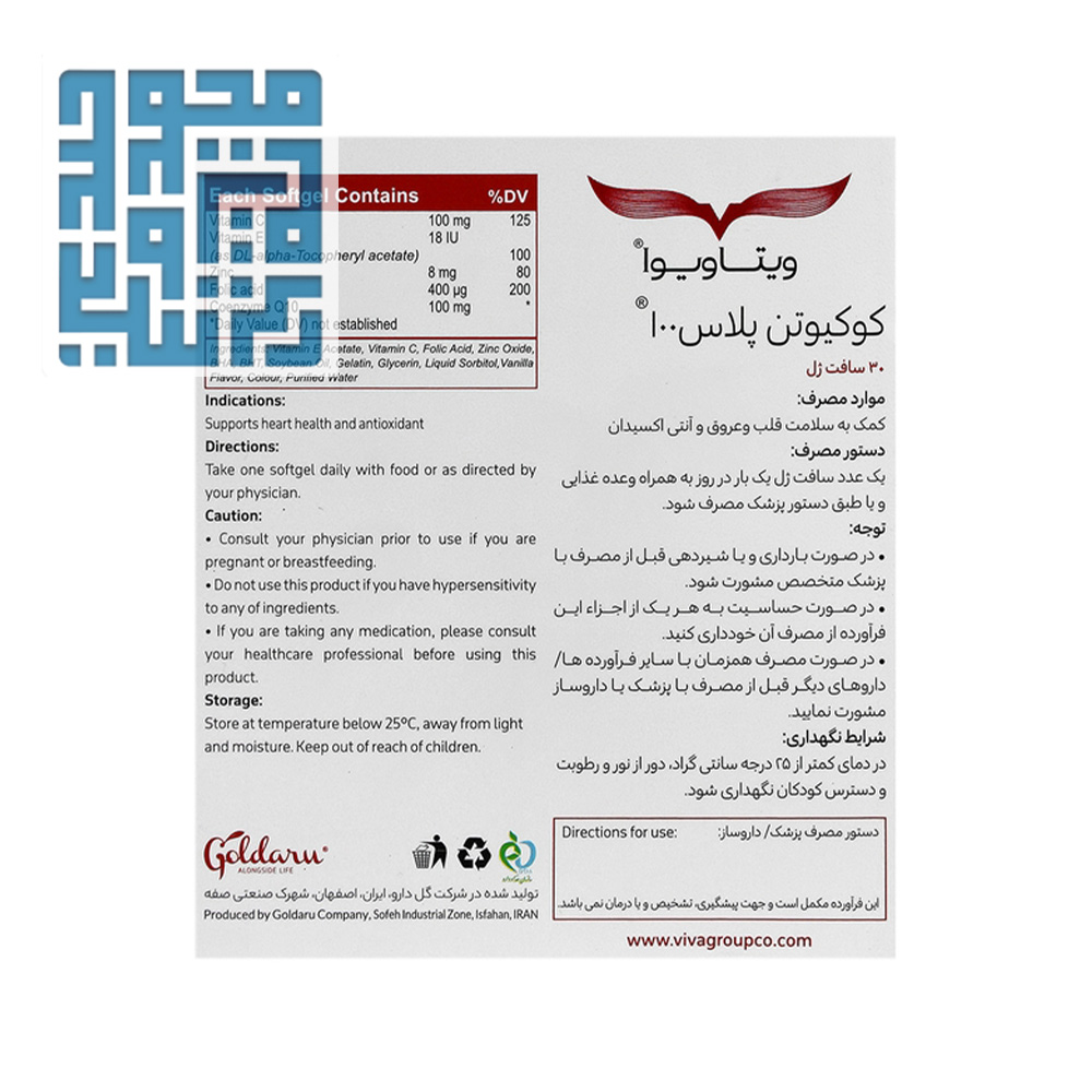 کوکیوتن پلاس ۱۰۰ ویتاویوا برای حفظ سلامت قلب و عروق
