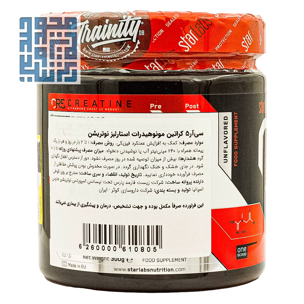 معرفی و بررسی پودر سی آر 5 کراتین مونوهیدرات استارلبز نوتریشن 300 گرمی