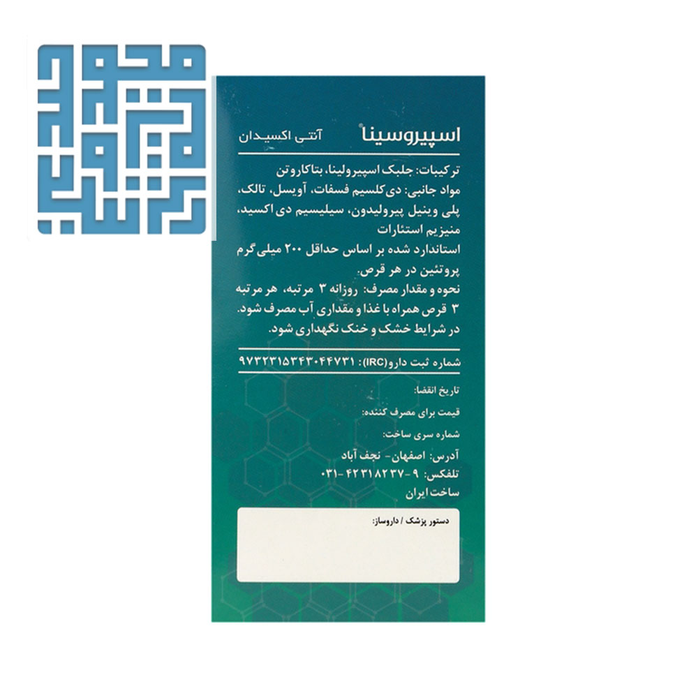 قیمت و خرید قرص اسپیروسینا سینافرآور