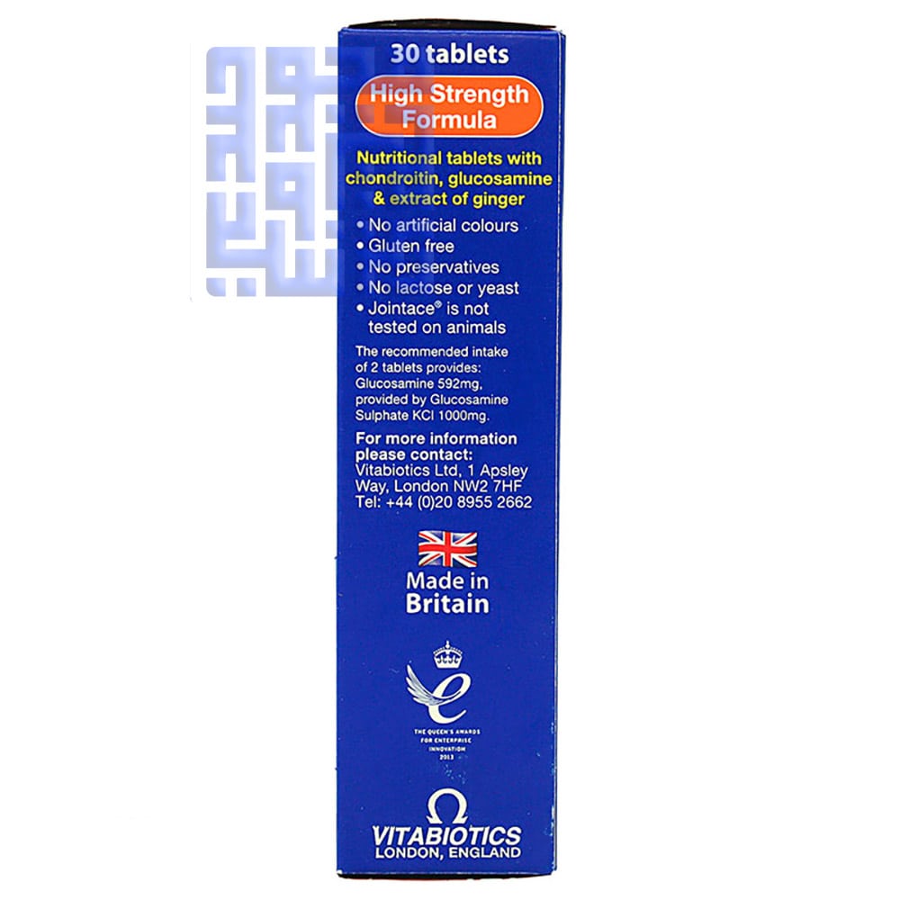ترکیب گلوکزامین سولفات، کندرویتین سولفات در عصاره ریشه زنجبیل در قرص جوینتیس ویتابیوتیکس ممکن است با تقویت سنتز غضروف، مهار تخریب غضروف و کاهش التهاب به سلامت مفاصل کمک کند.
