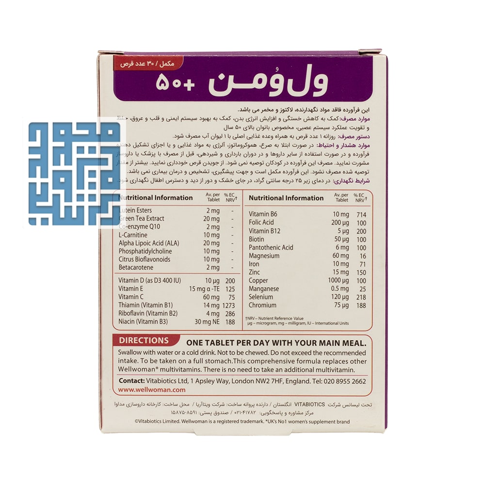 معرفی و بررسی قرص ول وومن ۵۰ سال به بالا ویتابیوتیکس مخصوص خانم ها ۳۰ عددی