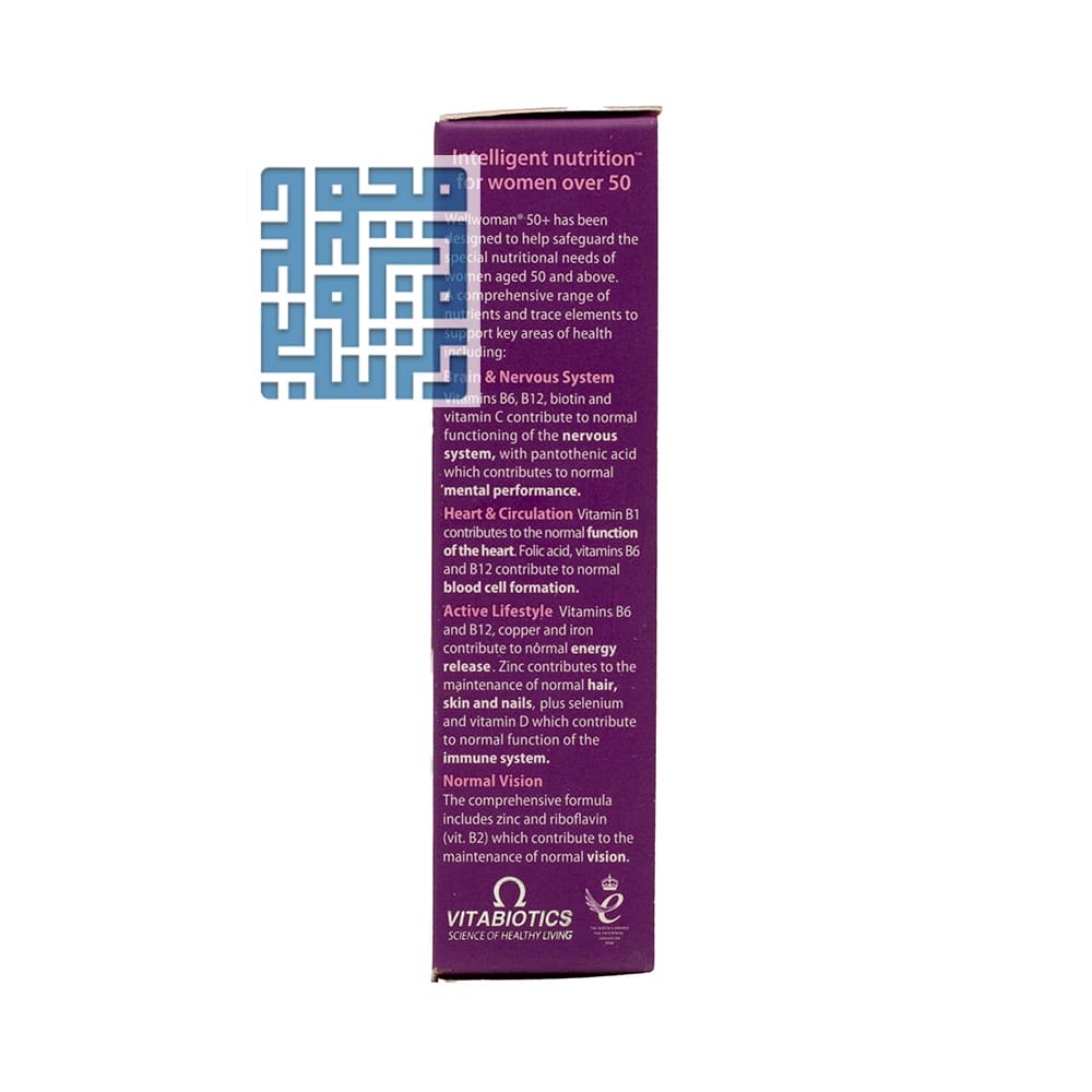 قرص ول وومن بالای 50 سال ویتابیوتیکس با توجه به نیازهای فیزیولوژیک بانوان بالای پنجاه سال تهیه شده و دوز مواد مؤثره آن مطابق با همین گروه سنی تنظیم شده است. استفاده از این محصول در سنین پایینتر یا برای مردان توصیه نمیشود و برای افراد زیر 50 سال بهتر است مکملهای مخصوص همان گروه سنی استفاده گردد.