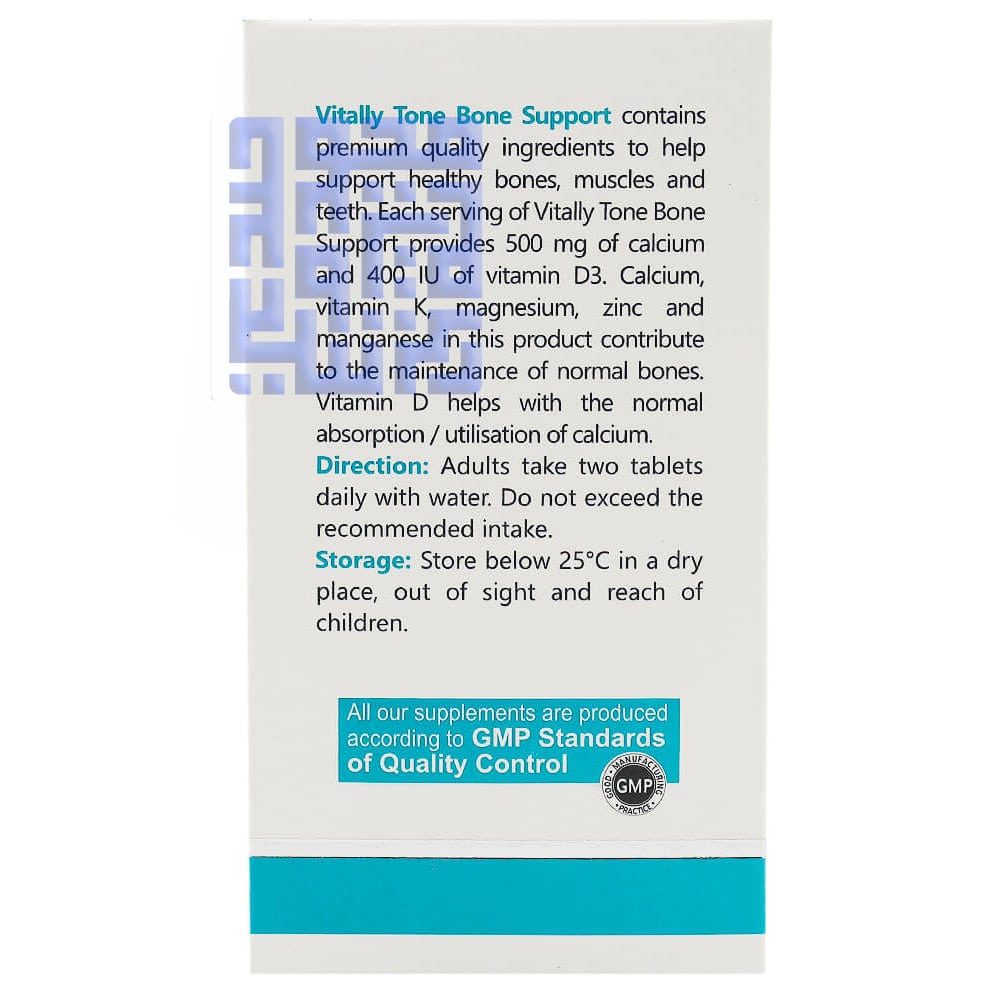 ویتامین د3 محلول در چربی جذب کلسیم را افزایش میدهد و به حفظ تراکم استخوان کمک میکند. بون ساپورت ویتالی تون حاوی ۴۰۰ واحد ویتامین د ۳ در هر دو قرص است.