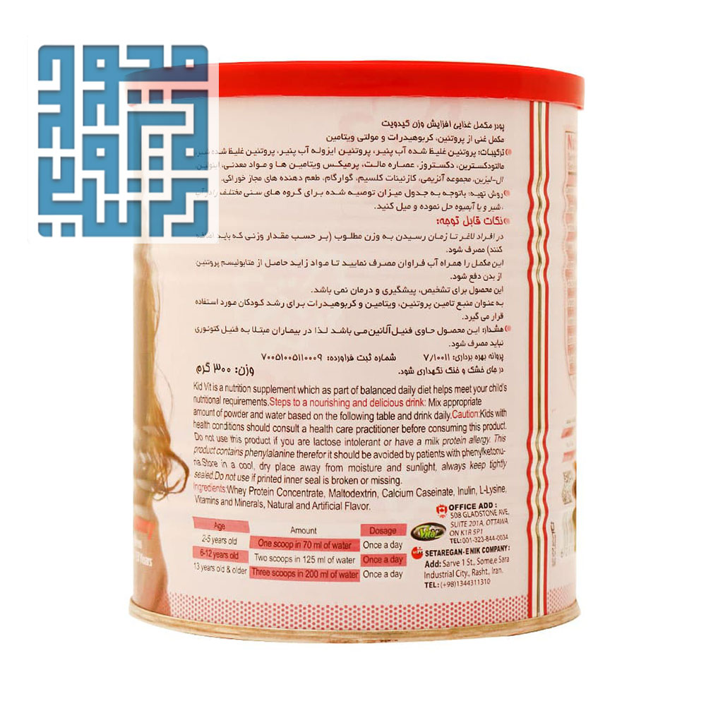 ترکیبات مکمل کیدویت دخترانه ویتاپی 300 گرم