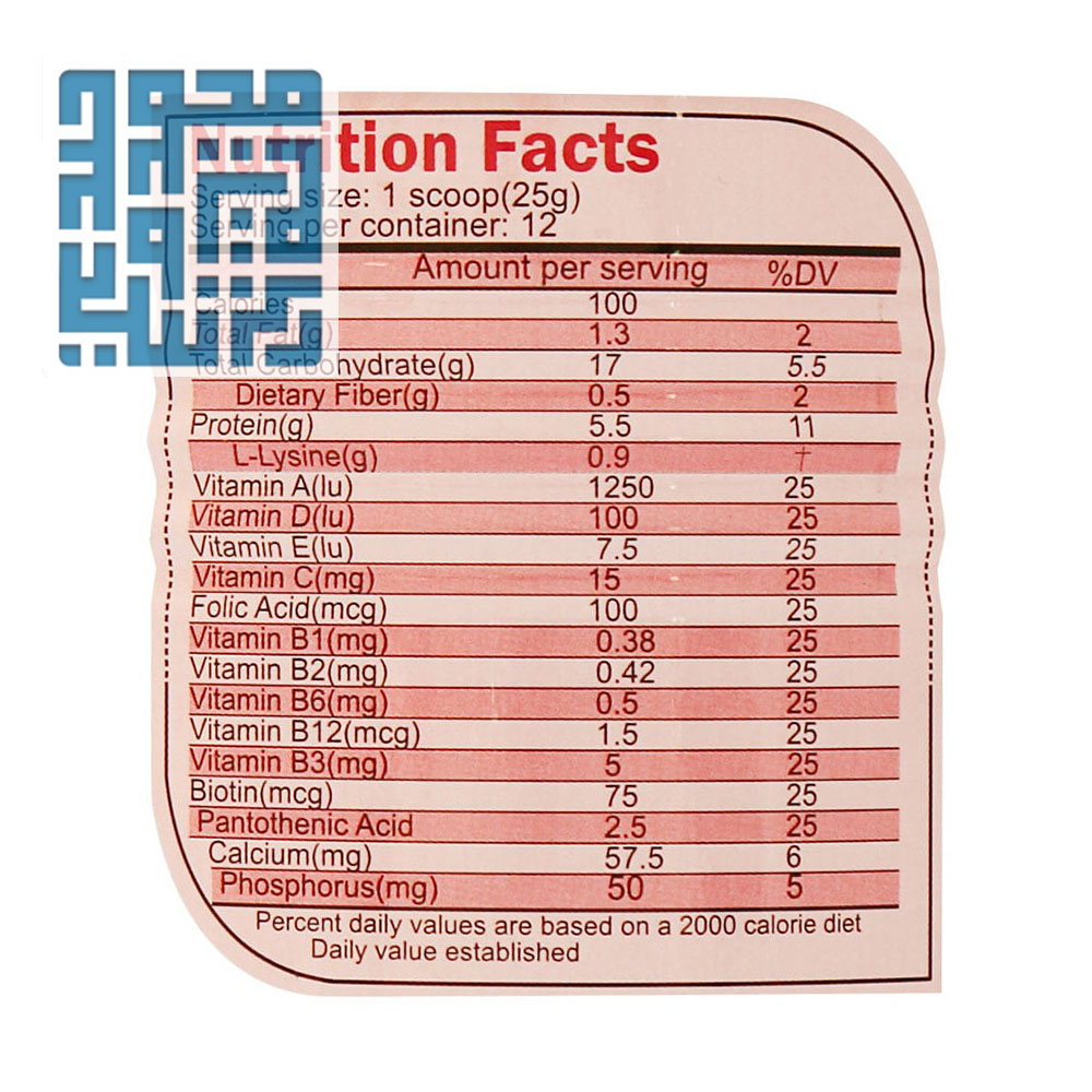 پودر کیدویت دخترانه ویتاپی 300 گرم یک غذای کمکی ویژه برای دختران ۲ تا ۱۳ سال است که با ترکیبی از پروتئین، کربوهیدرات و ویتامینهای ضروری، نیازهای تغذیهای روزانه را پشتیبانی میکند. وجود Protein (پروتئین) و Carbohydrate (کربوهیدرات) در کنار L-Lysine (ال-لیزین) و مجموعهای از ویتامینهای گروه B باعث افزایش انرژی، کمک به رشد بافتها و تقویت عملکرد سیستم ایمنی میشود. این ترکیبات بهطور طبیعی در دسته غذای کمکی کودک قرار میگیرند و برای پوشش کامل انرژی روزانه طراحی شدهاند.