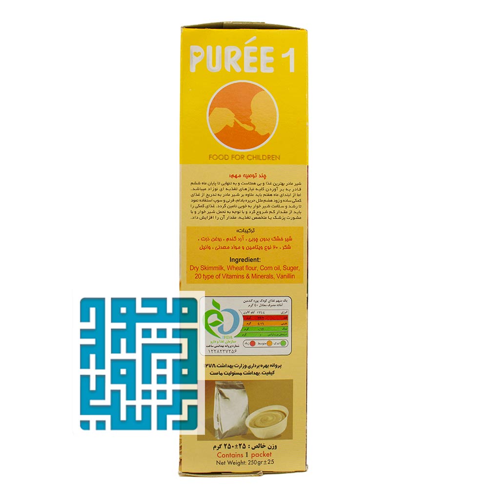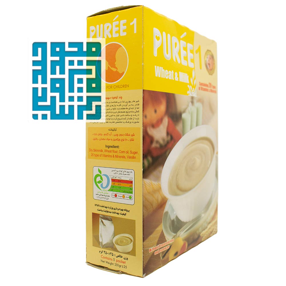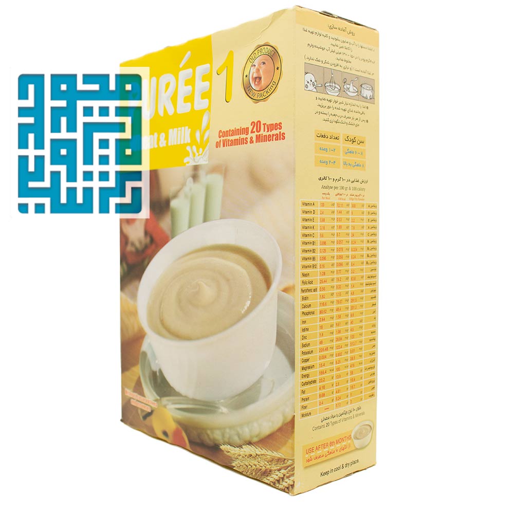 هر بسته از پوره 1 پوره گندمین و شیر با وزن ۲۵۰ گرم یک منبع تغذیه بوده و حاوی ترکیبی از ۲۰ نوع از ویتامینها و مواد معدنی است. مواد مغذی در این محصول با دقت انتخاب شده تا رشد و نمو سالم نوزادان را تقویت کنند.